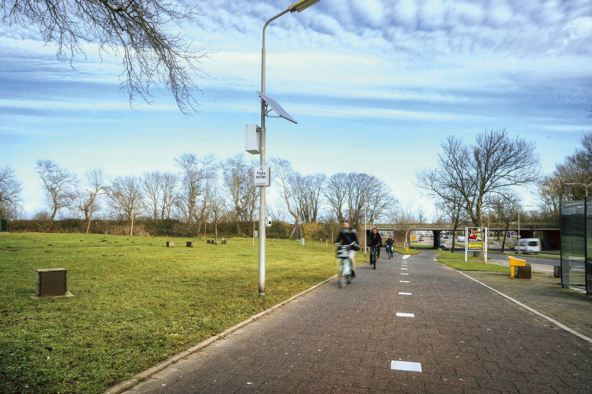 De fietsteller is een radar die alle voorbijgaande voertuigen op het fietspad telt. Voertuigen? Ja, wanneer je om je heen kijkt, zie je dat er steeds meer verschillende gebruikers op het fietspad zijn: fietsen, maar ook e-bikes, steps, bakfietsen, racefietsen, scootmobielen, skateboarders en noem het maar op. Dat maakt het er niet altijd veiliger op.